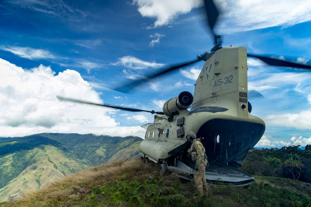 The training, which involves four CH-47F Chinook helicopters from the Townsville-based 5th Aviation Regiment, will be conducted in throughout the day within the Owen-Stanley Ranges.