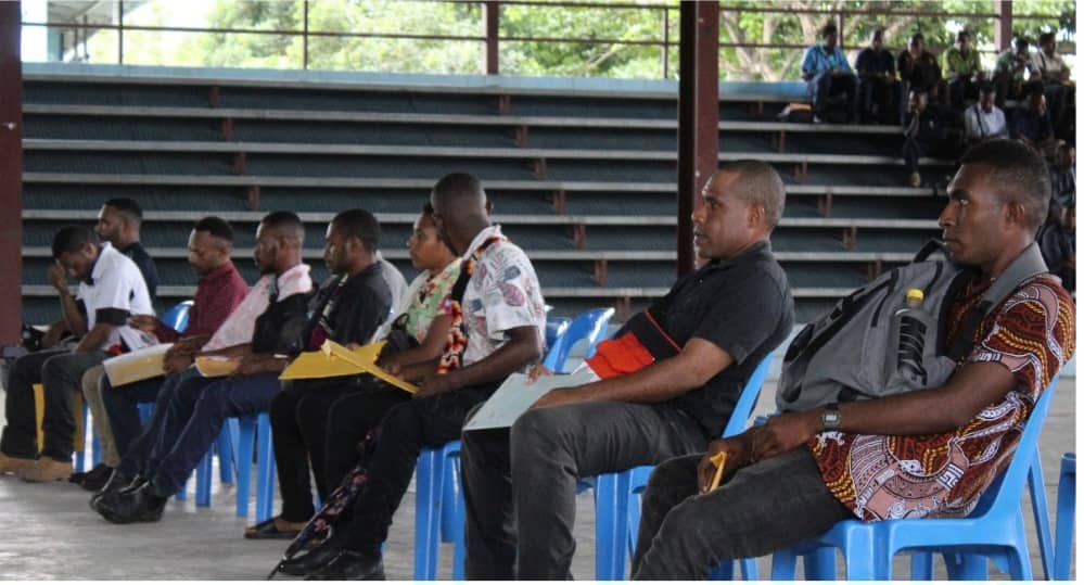 Shortlisted candidates in Lae, Morobe Province, waiting in line to be interviewed at Lae Secondary School Hall, Lae Morobe Province. Picture supplied by Police Media Team.