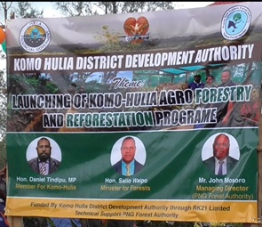 PNG Forest Authority Managing Director John Mosoro has praised the people of Komo-Hulia District in Hela Province for initiating an Agro-Forestry and Reforestation Project which will see more trees planted and assist reduce the 800,000 hectares of forests target set by the government to be planted by 2050.