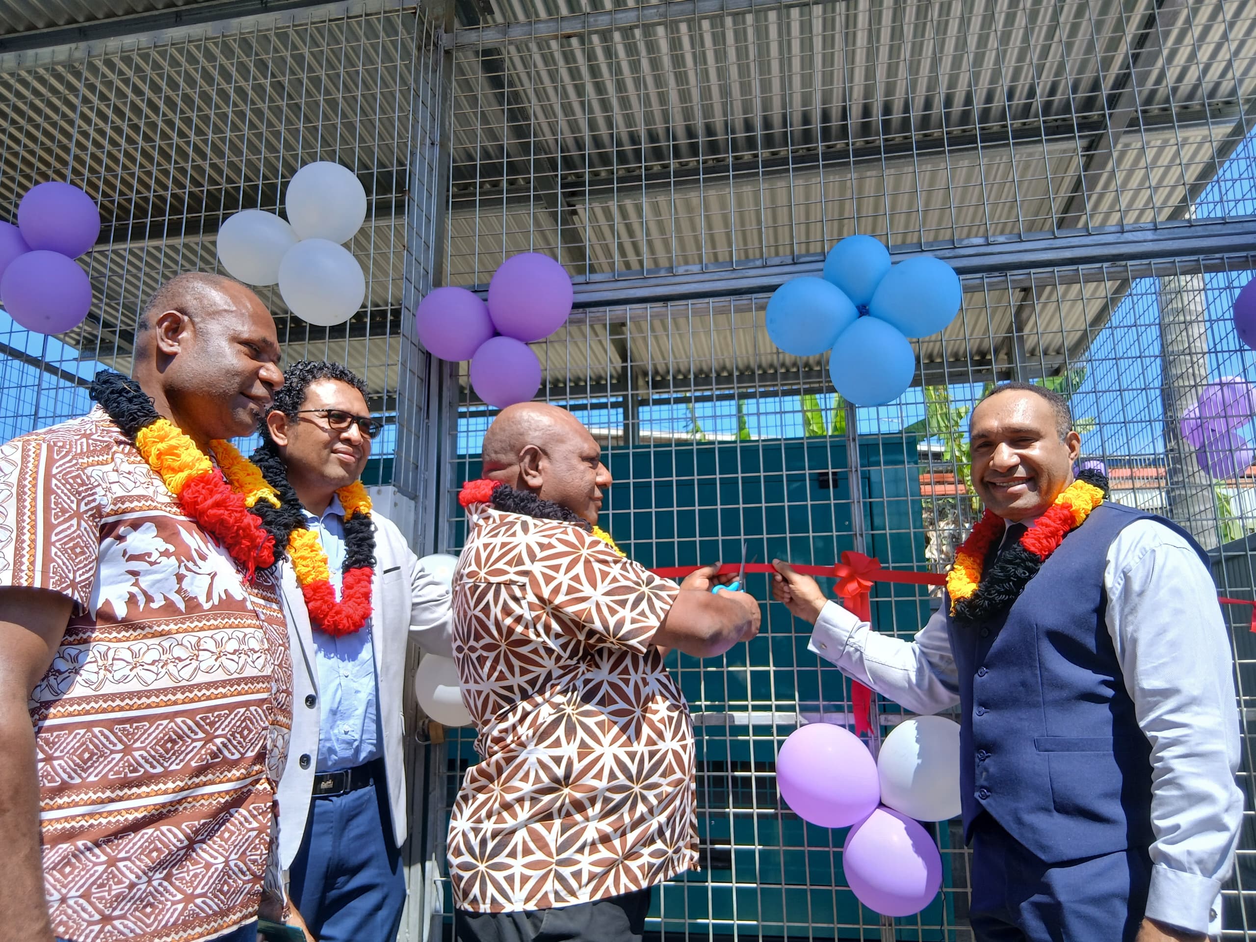 From left, NCDPHA CEO Dr Robin Oge and Moresby North East DA Davies Kia cut the ribbon of new genset presented to Six Mile Clinic while Pomgen deputy director medical services Dr Henao Asa and project manager Robin Elfau look on. Picture by Sepkolin Walne.