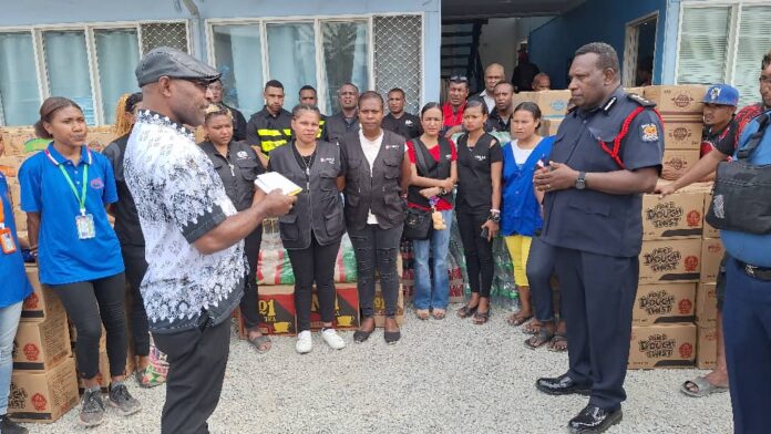 The commander of NCD and Central Provinces, Acting Assistant Commissioner of Police Benjamin Turi, while receiving the cash and goods, thanked the four nightclubs and a food company for their donation this afternoon. He said this is a way forward to strengthen the idea of police and community working together.