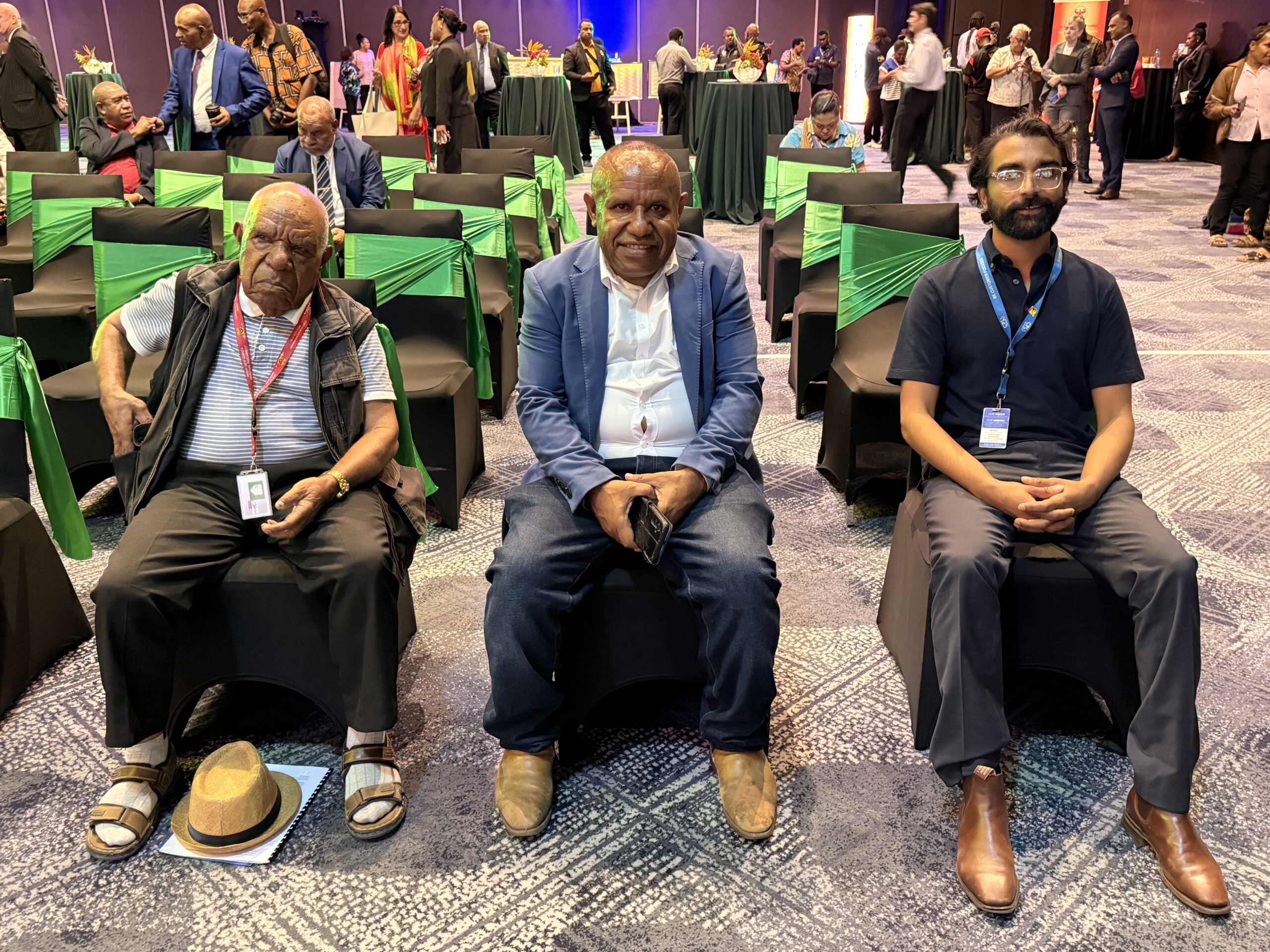 The Belos were seated at the front alongside CPL Group representative Ajay Patel, as they awaited the arrival of distinguished guests, including Prime Minister James Marape and BPNG Governor Elizabeth Genia.